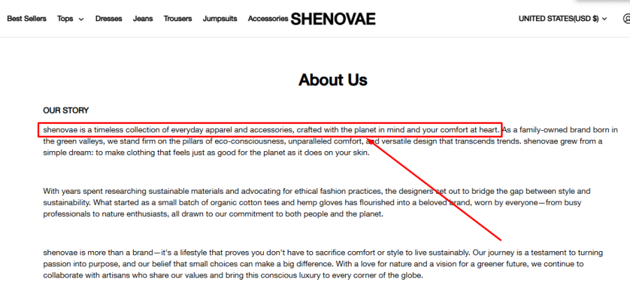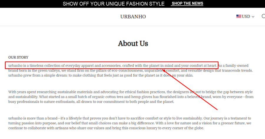 The problem is that the exact same sentence appears on several other websites, such as urbanho.com and shenovae.com. When multiple unrelated stores share the same text, it usually suggests one of two things.