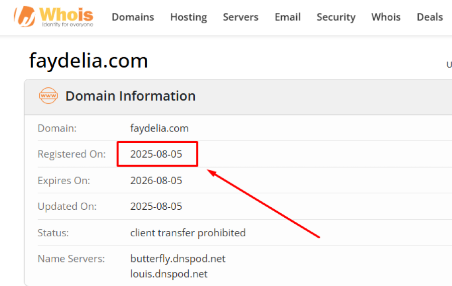 According to both ScamAdviser and Whois records, Faydelia.com was registered on 2025 08 05. A newly registered domain does not automatically mean a scam. Many legitimate businesses start online every day.