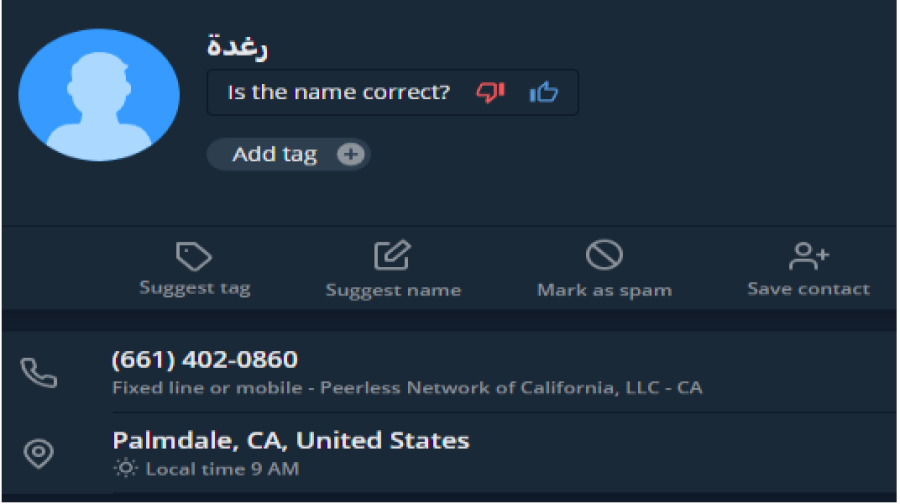 Truecaller shows the random name 'Raghda'.